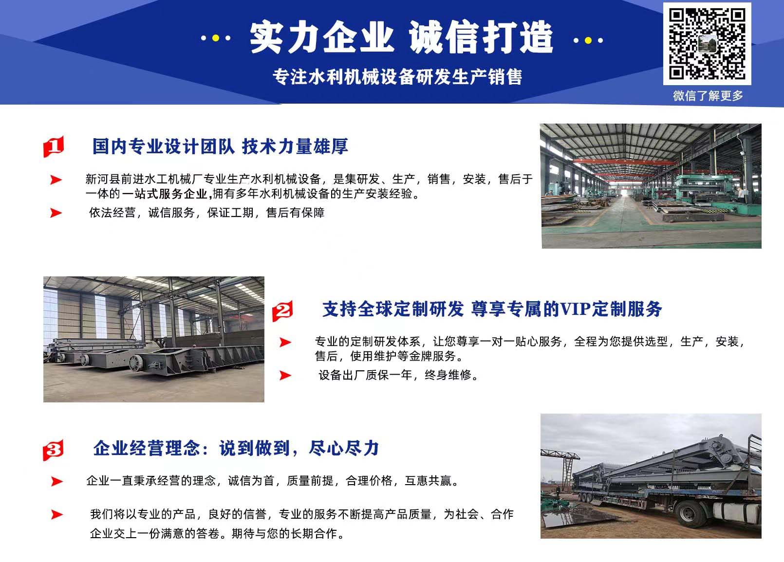 前進水工優(yōu)勢:具有專業(yè)研發(fā)團隊,精湛的制造工藝,嚴謹的檢驗技術,完善的售后服務